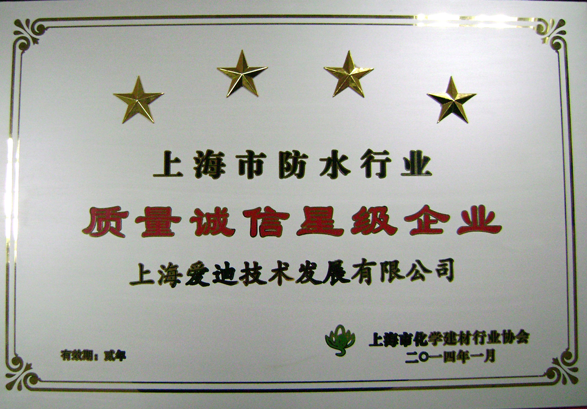 上海市防水行業(yè)質(zhì)量誠信四星級企業(yè)——愛迪
