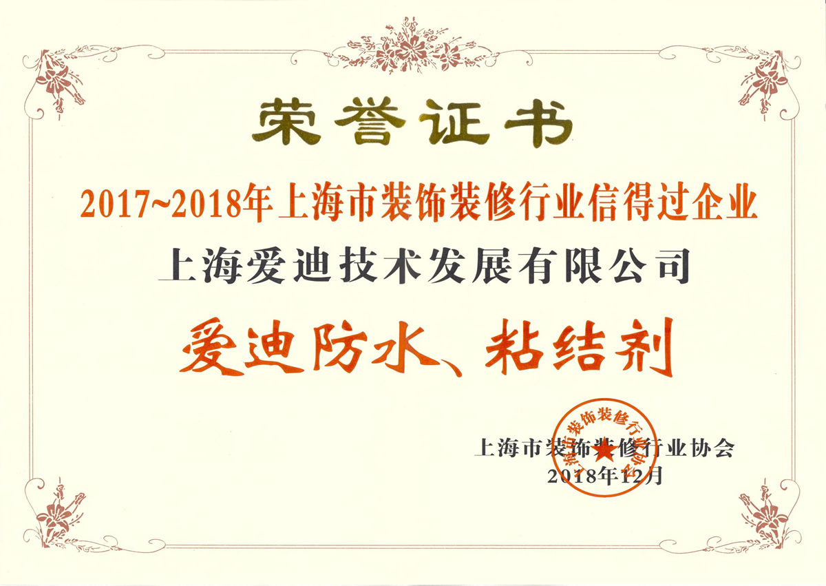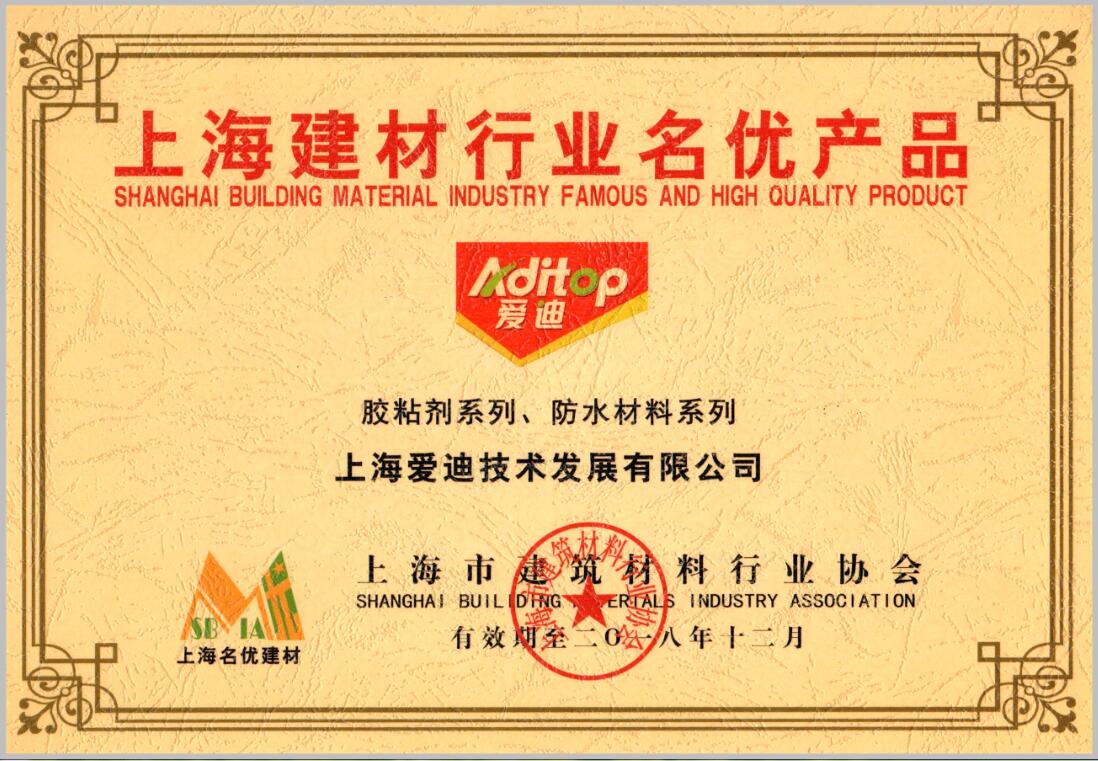 上海建材行業(yè)名優(yōu)產(chǎn)品(膠粘劑系列、防水材料系列)