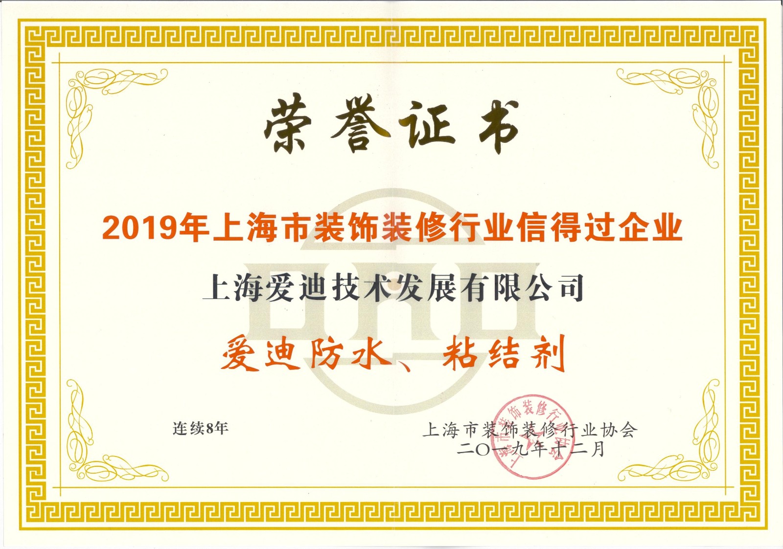 2019年上海市裝飾裝修行業信得過企業——愛迪防水、粘結劑
