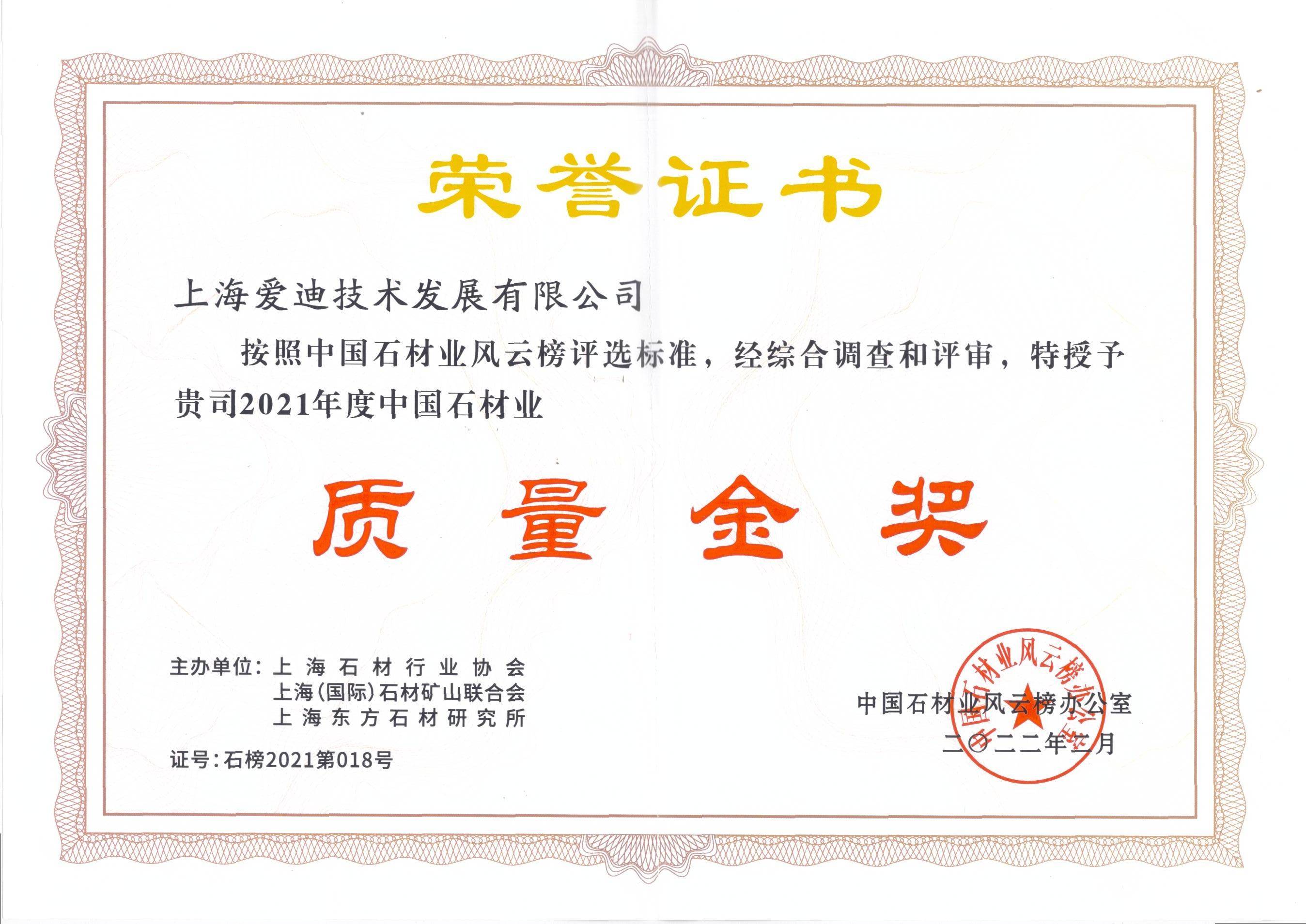 中國石材業-質量金獎