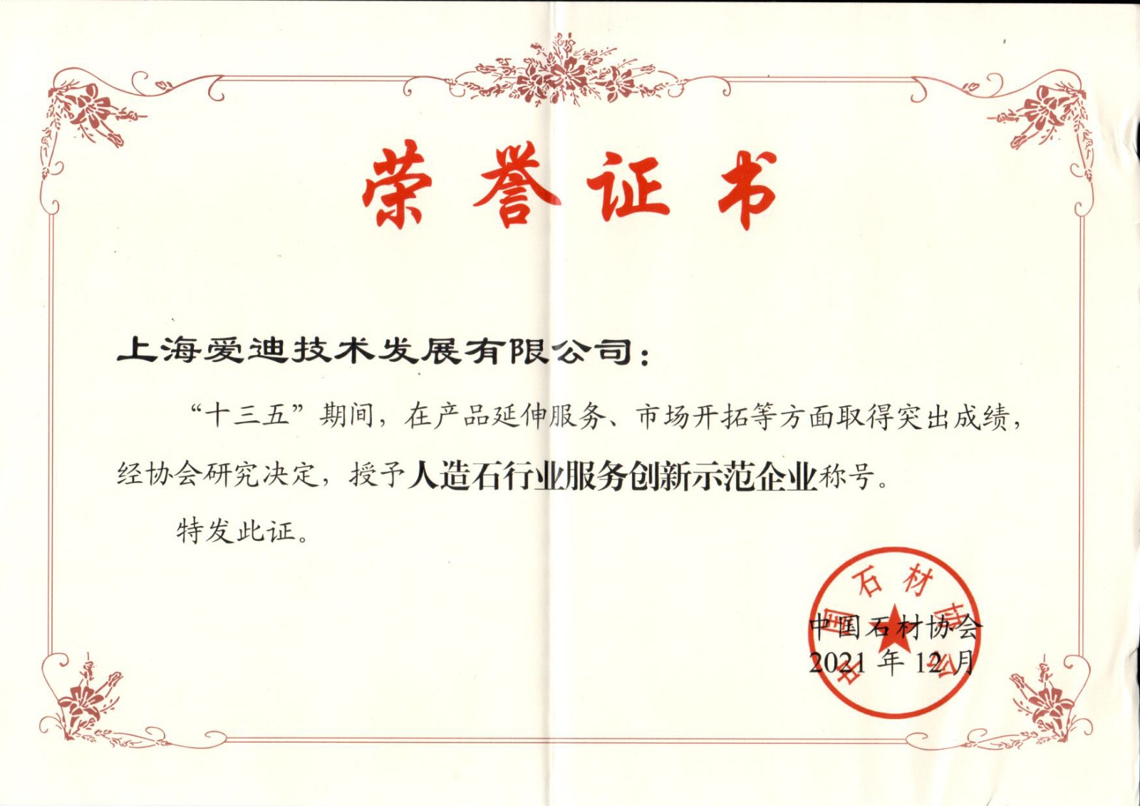 人造石行業服務創新示范企業