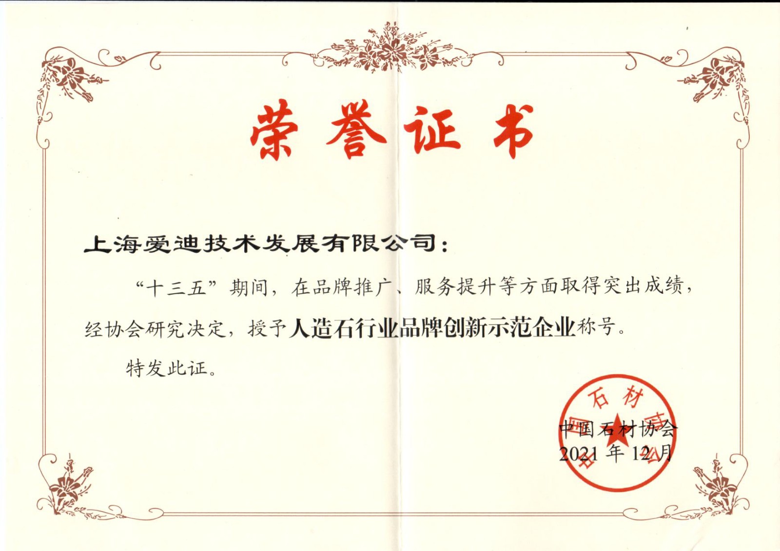上海石材行業協會-先進單位