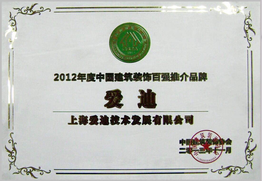 中國建筑裝飾百強聯(lián)合推薦品牌—獎牌