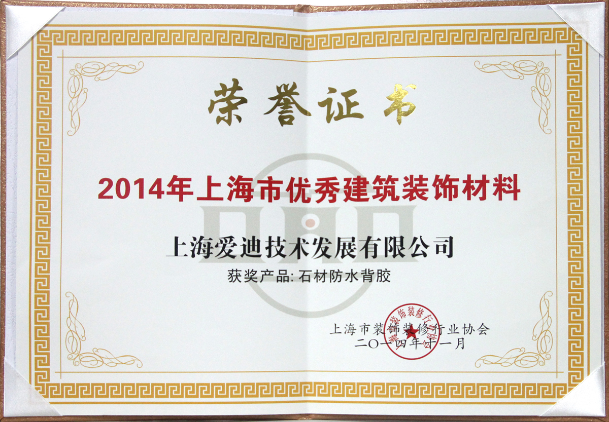 上海市優(yōu)秀建筑裝飾材料——石材防水背膠證書