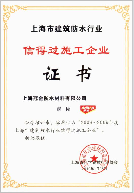 上海市建筑防水行業(yè)信得過(guò)施工企業(yè)