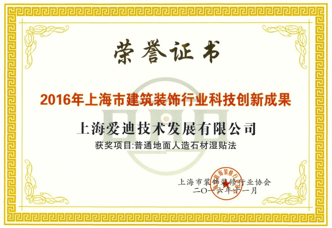上海市建筑裝飾行業科技創新成果獎-普通地面人造石材濕貼法