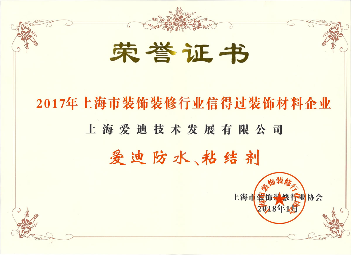 上海市建筑膠粘劑行業質量誠信星級企業證書
