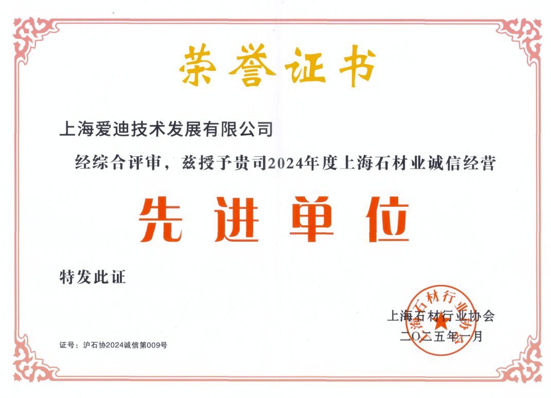 24年度上海石材業誠信經營先進單位